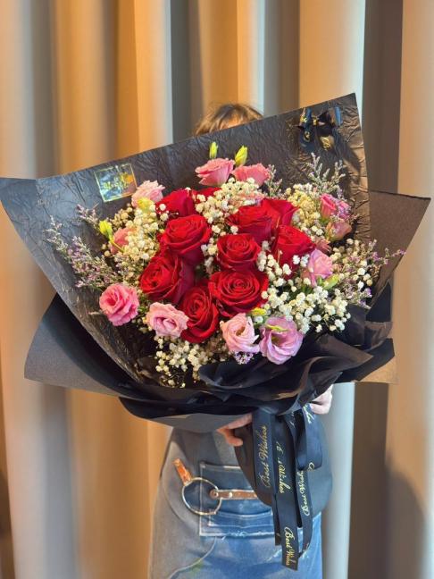 ELEGANT 9 RED ROSE IN BLACK BOUQUET