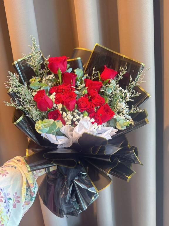 ELEGANT 9 RED ROSE IN BLACK BOUQUET